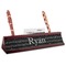 Your desk name plates are crafted from a high-quality, dark-cherry mahogany. At approximately 9.5 by 1.875 by 2.5 inches, this name plaque will fit perfectly, front and center, on your desk. Your customization spans across the entire face of the nameplate. Behind the nameplate lies a skinny slot that can fit approximately 15, traditionally-sized, business cards. You can also store your writing utensils on either side of this custom desk name plate.