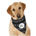 Music notes are set on a white background just like a sheet of music. A simple black outlined white label is placed in the middle of the design. Personalize with an initial and name of your choice.
