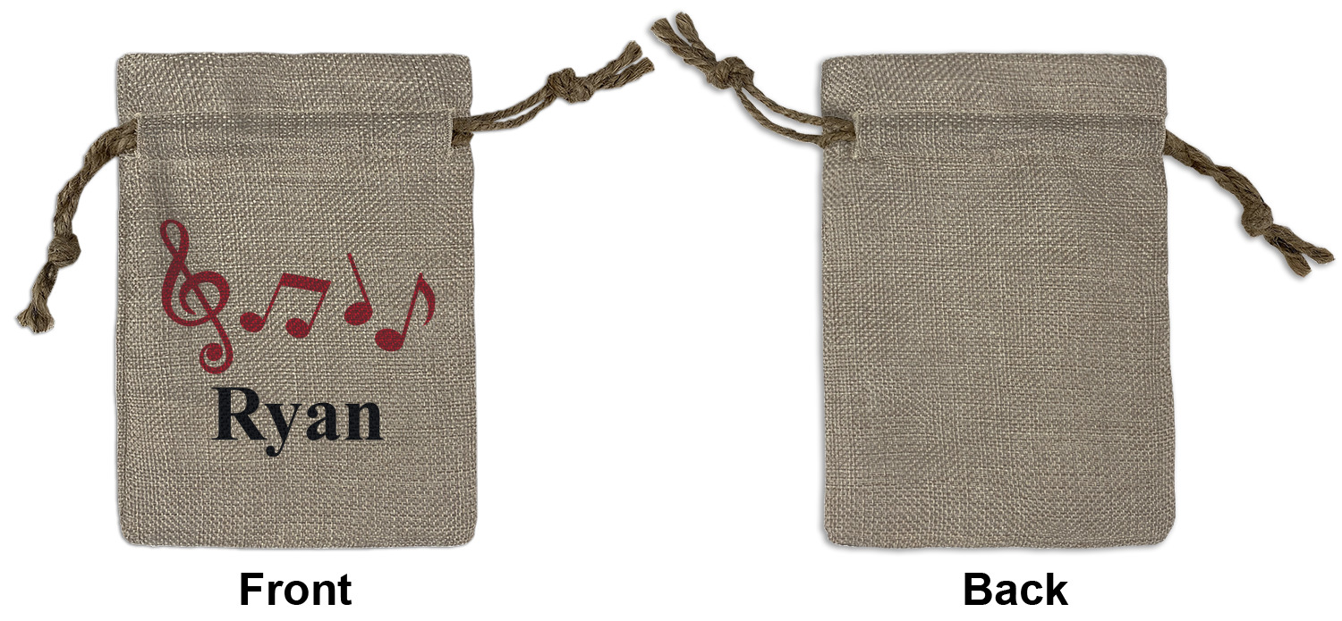 We sell our Burlap Gift Bags in 3 variant sized bags. Made with burlap polyester, each personalized bag can be secured with a twine drawstring pull. Your custom design is available to print on one side or both sides - completely up to you! The sizes of the bags measure approximately 4.5" x 6.5" for the smallest size, 6.5" x 8.0" for the medium size, and 6.5" x 13.5" for the large-sized bag.