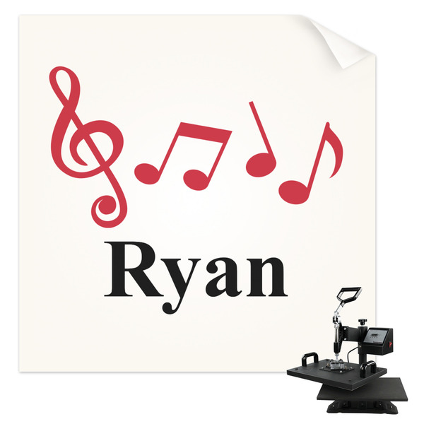 Music notes are set on a white background just like a sheet of music. A simple black outlined white label is placed in the middle of the design. Personalize with an initial and name of your choice.