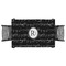 Music notes are set on a white background just like a sheet of music. A simple black outlined white label is placed in the middle of the design. Personalize with an initial and name of your choice.