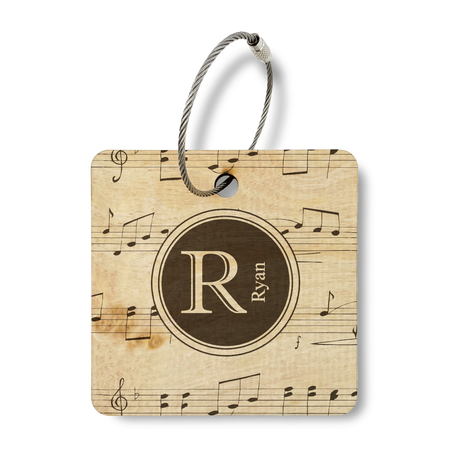 The wood has a durable hard-wax oil finish on it to ensure a lasting sheen and durable finish. The wire rope keychain has a strong screw latch to ensure the tag stays secure to your luggage.