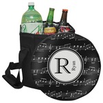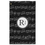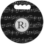 Music notes are set on a white background just like a sheet of music. A simple black outlined white label is placed in the middle of the design. Personalize with an initial and name of your choice.