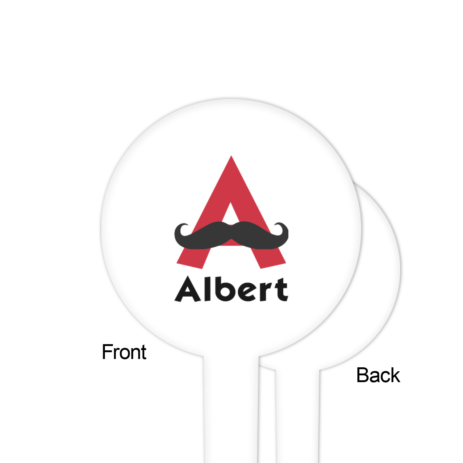 Mustache & Lip Designs for 4" Round Plastic Food Picks - White - Single-Sided