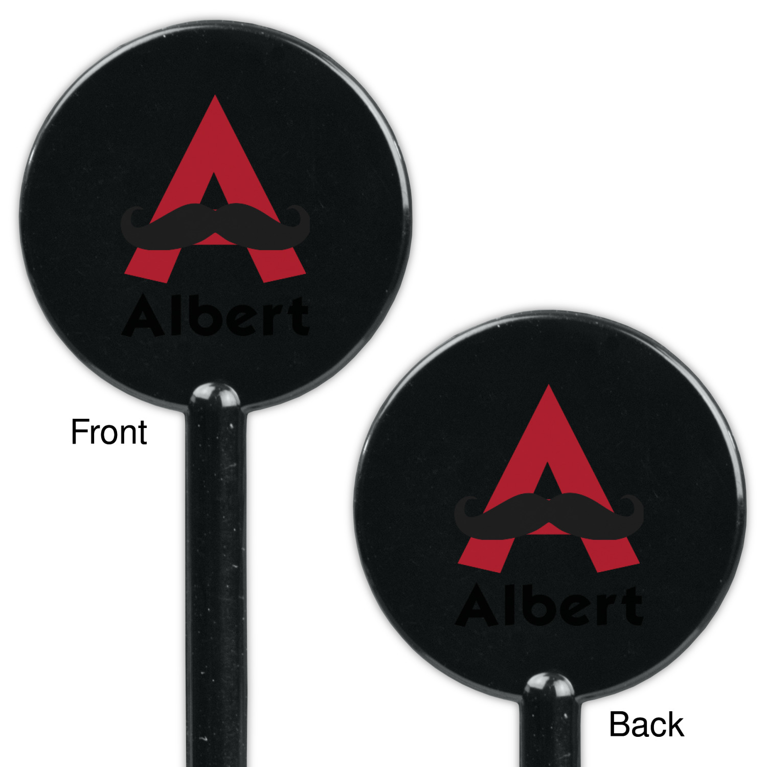 Mustache & Lip Designs for 5.5" Round Plastic Stir Sticks - Black - Double-Sided