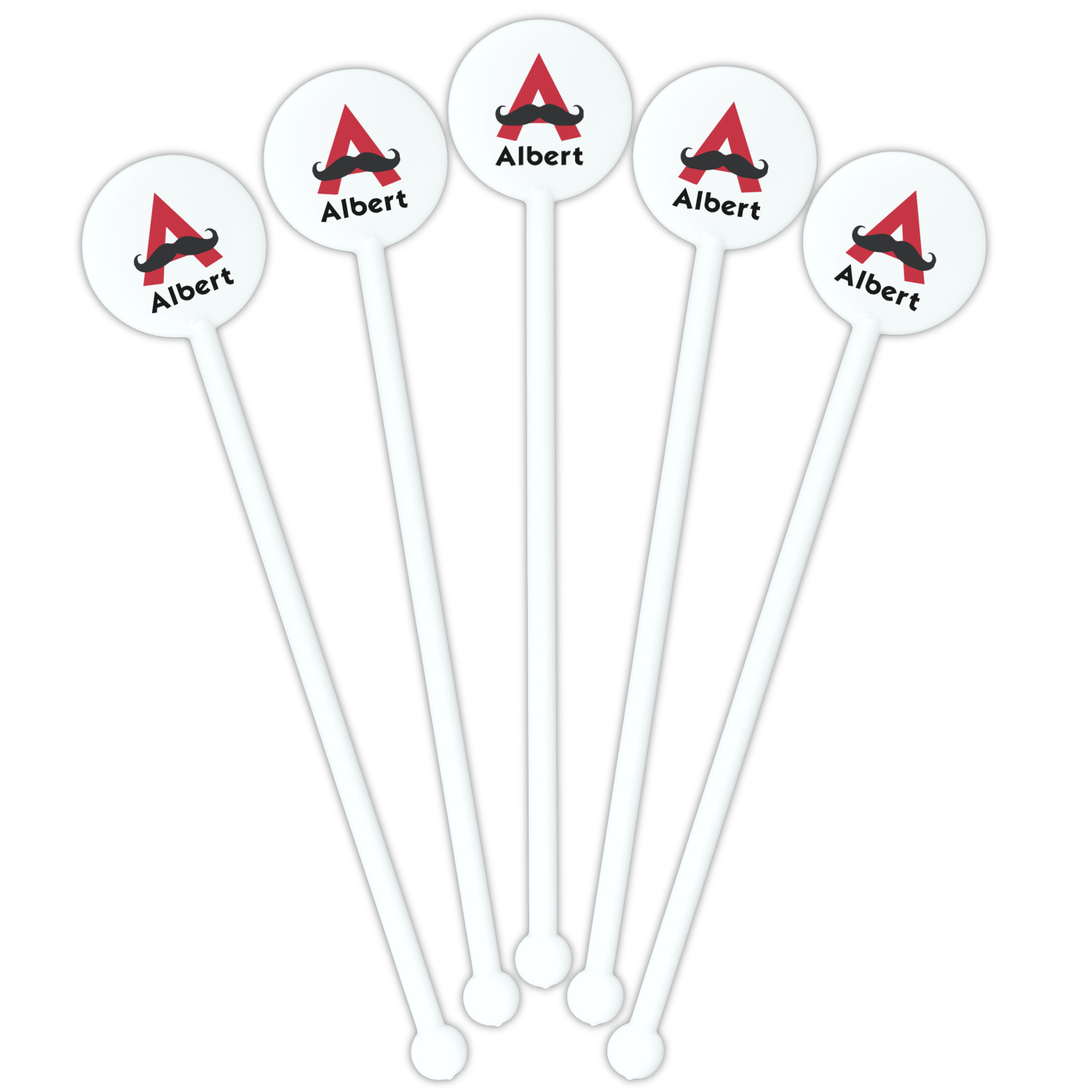 Mustache & Lip Designs for 5.5" Round Plastic Stir Sticks - White - Single-Sided
