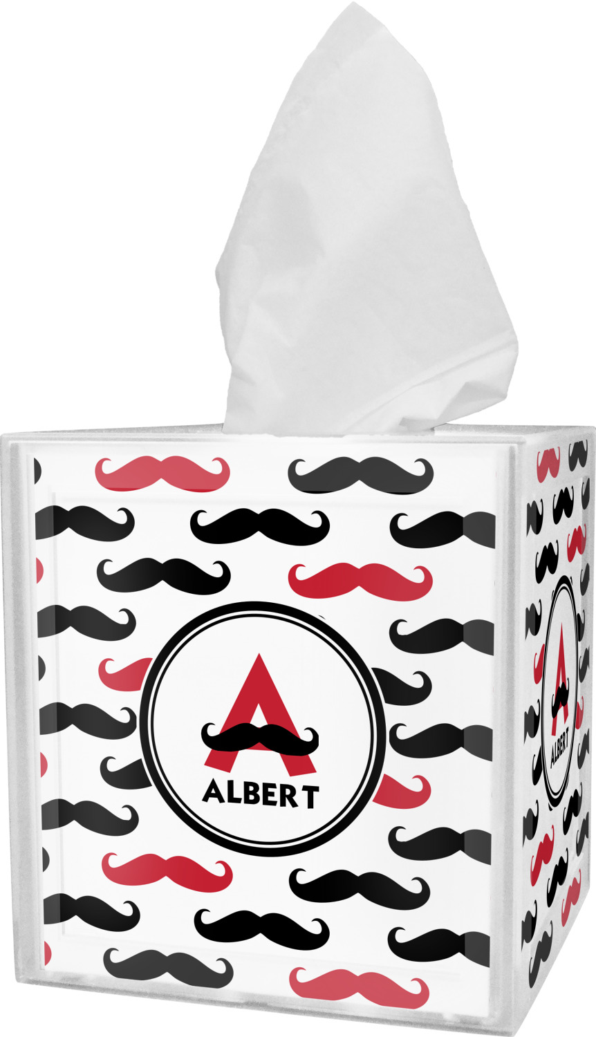 These tissue holders are built from durable acrylic and display your unique personalization on fine-quality vinyl inserts placed within the four sides and top. The box features two pieces, allowing you to easily switch out tissue boxes. On the sides, you'll find ridges that ensure the top and base fit securely in place. The bottom of these tissue box holders has four, rubber, non-slip pads to prevent the box from scuffing any surface you decide to display it on. Each box can fit a standard 5-by-5-inch box of tissues.