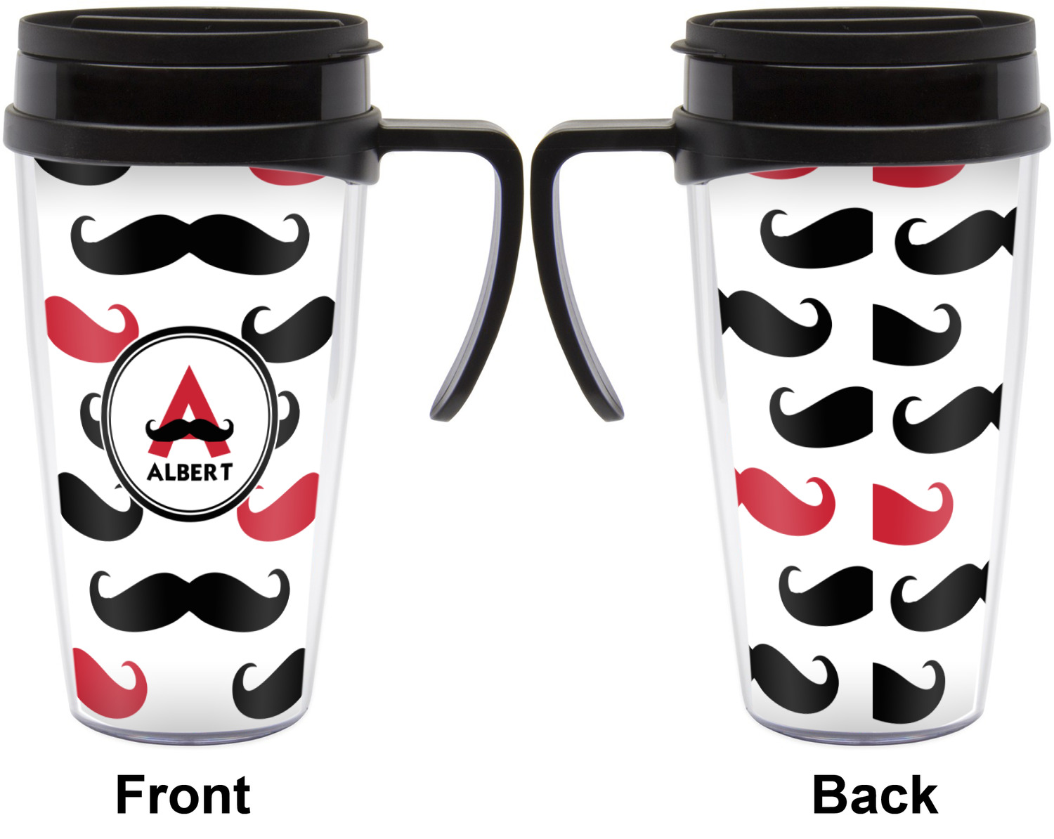 These thermal mugs are free of BPA, and insulated, to keep your drinks hot or cold. The black, snap on lid and the slider for sipping allows you to conveniently sip your drink without constantly worrying about a disastrous spill. We offer this mug with and without a handle, to better suit your needs. Each custom thermal mug holds up to 16 ounces of liquid and displays your customization on all sides on premium gloss media inserts.