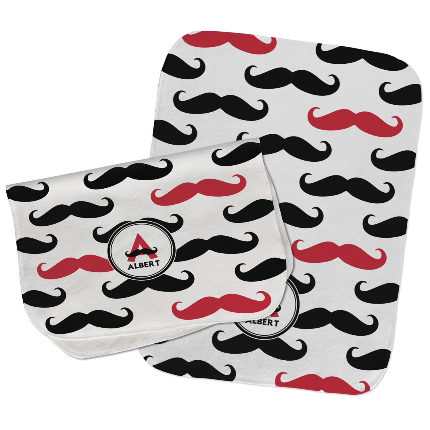With the growing popularity of mustaches, we had to create a mustache print!! Our adorable mustache print is mostly black and white with a pop of color. We chose to do our design and images with a splash of red. You can customize your design by selecting the color you want! Don't forget to add your name and/or initial for that fun personalization with a touch of whimsy!