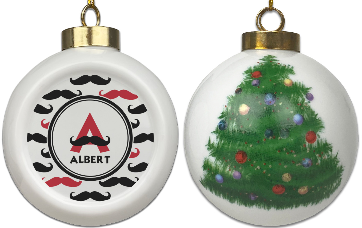 Our Christmas ornaments are a unique ceramic ball shape with a twist as it has a flat face to display your custom design! Select from one of our two design types - Christmas Tree or Poinsettia Garland - to adorn the curved back of your personal design. Each ornament measures 3H x 2.5W x 2D accompanied with a gold string accent for finishing touches to hang on your beautiful Christmas tree!