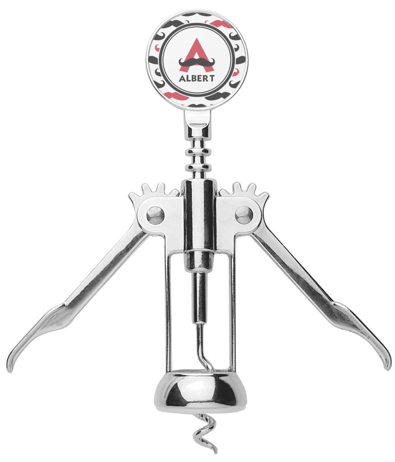 Built from a robust stainless steel, this wine bottle opener features winged grippers that let you remove the cork with little to no resistance. Your personalized corkscrew also includes a circular turn-handle at its top. At 7 inches long, you can easily store this wine corkscrew in a drawer or a shelf. Your customization is printed on both sides of the turn-handle, and can be customized individually.
