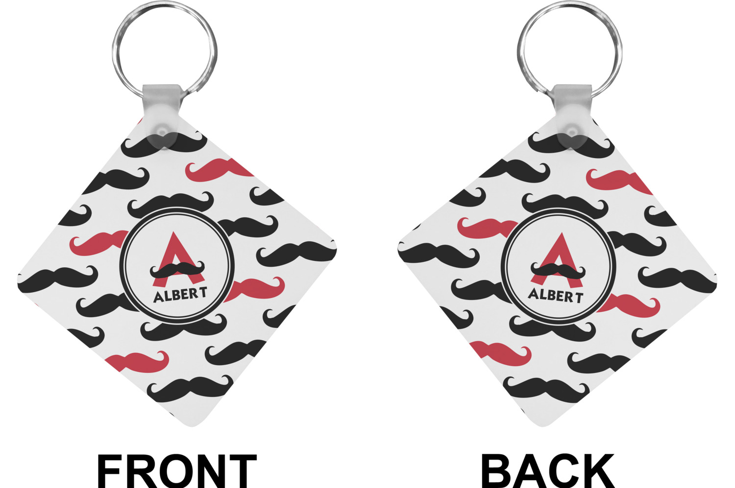 Our personalized keychains attach to the included metal, split key ring with a plastic, removable snap. Since a metal ring is included with your purchase, you have the liberty to keep your keys together on the ring, with or without your unique keychain. We offer this keychain in three different shapes: circle, heart, or diamond. We print your personalized design(s) on both sides of the key chain, and the surface has a glossy, reflective finish that only emphasizes your design. Each keychain is approximately 2.25 by 2.25 inches.