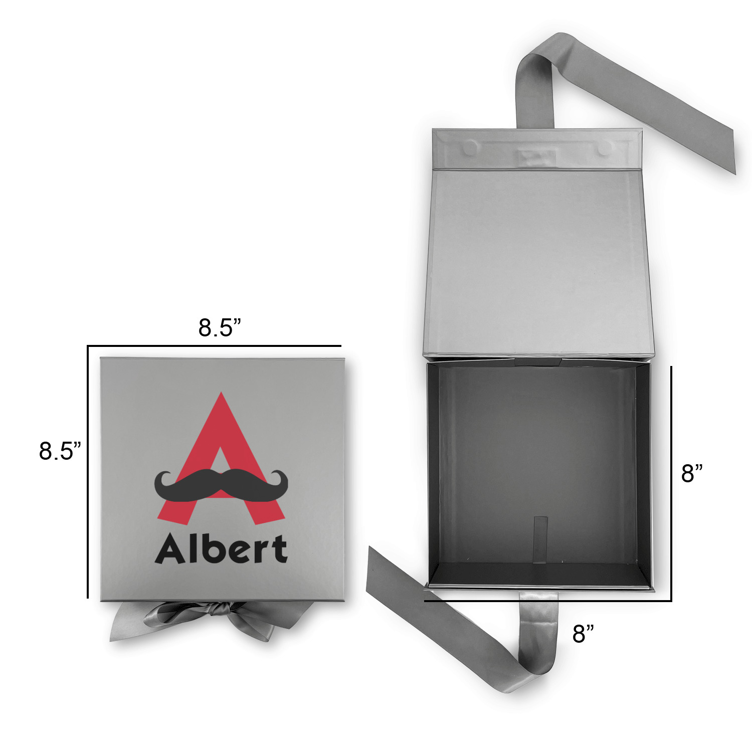 Design your own using our design library and we will print your artwork onto the lid of the gift box. When the box is closed the ribbons can be tied to secure the lid and add to the elegant look of these gift boxes.