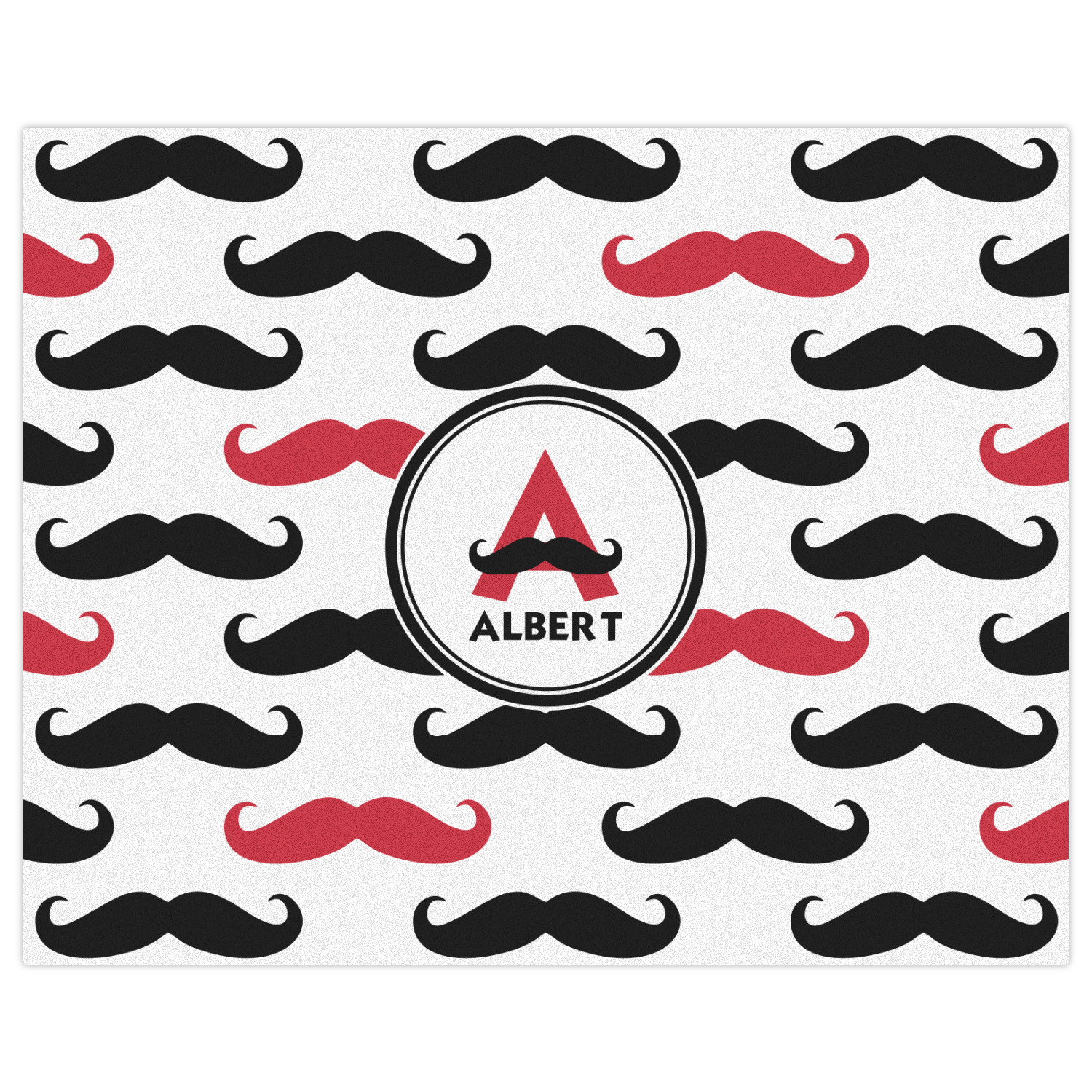 With the growing popularity of mustaches, we had to create a mustache print!! Our adorable mustache print is mostly black and white with a pop of color. We chose to do our design and images with a splash of red. You can customize your design by selecting the color you want! Don't forget to add your name and/or initial for that fun personalization with a touch of whimsy!