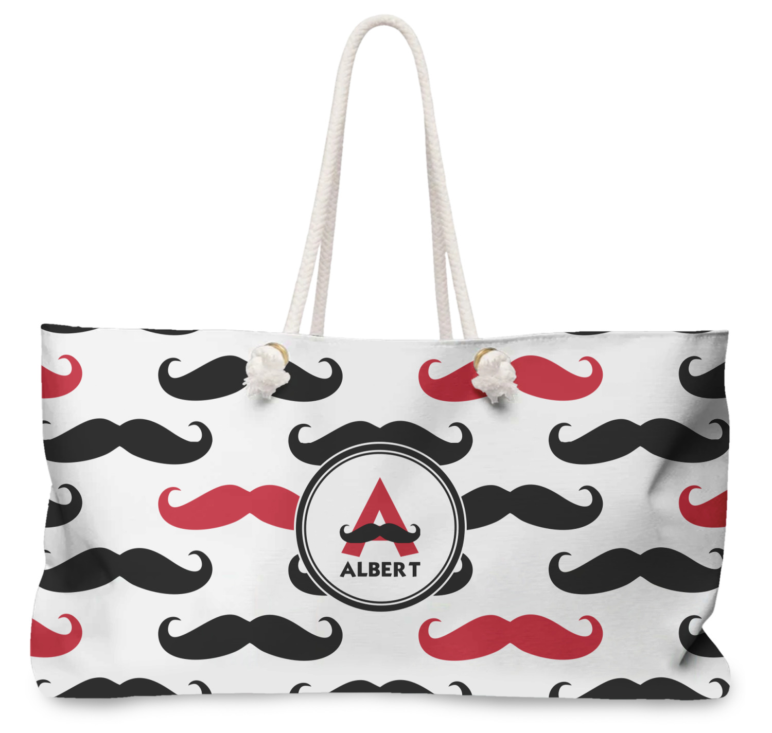 Our oversized weekender tote with rope handles is perfect for your weekend at the beach or on the town. This large tote are 24" W X 13" H, with a 5" gusset and a 27" thick rope handles with a knot that is put through a grommeted brass hole.