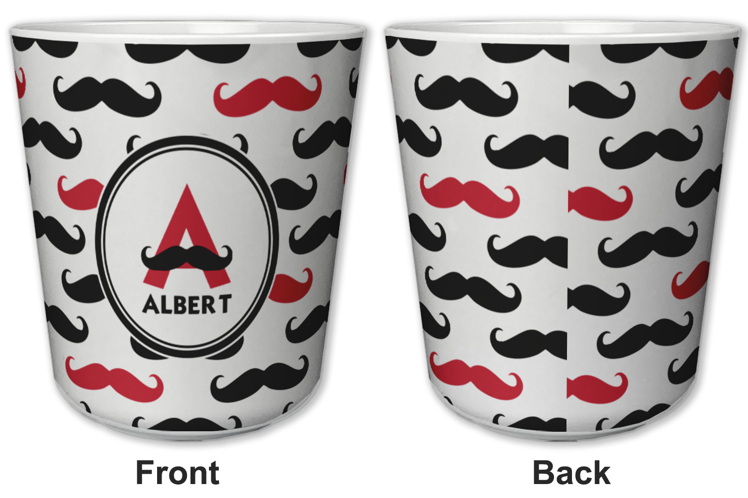Made from a durable plastic, these tumbler cups are strong enough to withstand daily use and are perfect for young children. Each of these personalized plastic cups holds 6 ounces and measure at approximately 3" x 3" x 3.25". Place them in the bathroom as a rinsing cup, or give them to your kids during mealtimes. These 6 oz. plastic cups are BPA free, microwave and dishwasher safe, for your convenience. Your personalized design is displayed across the entire outside of this cup, while the inside is white in color to make your customization really stand out.