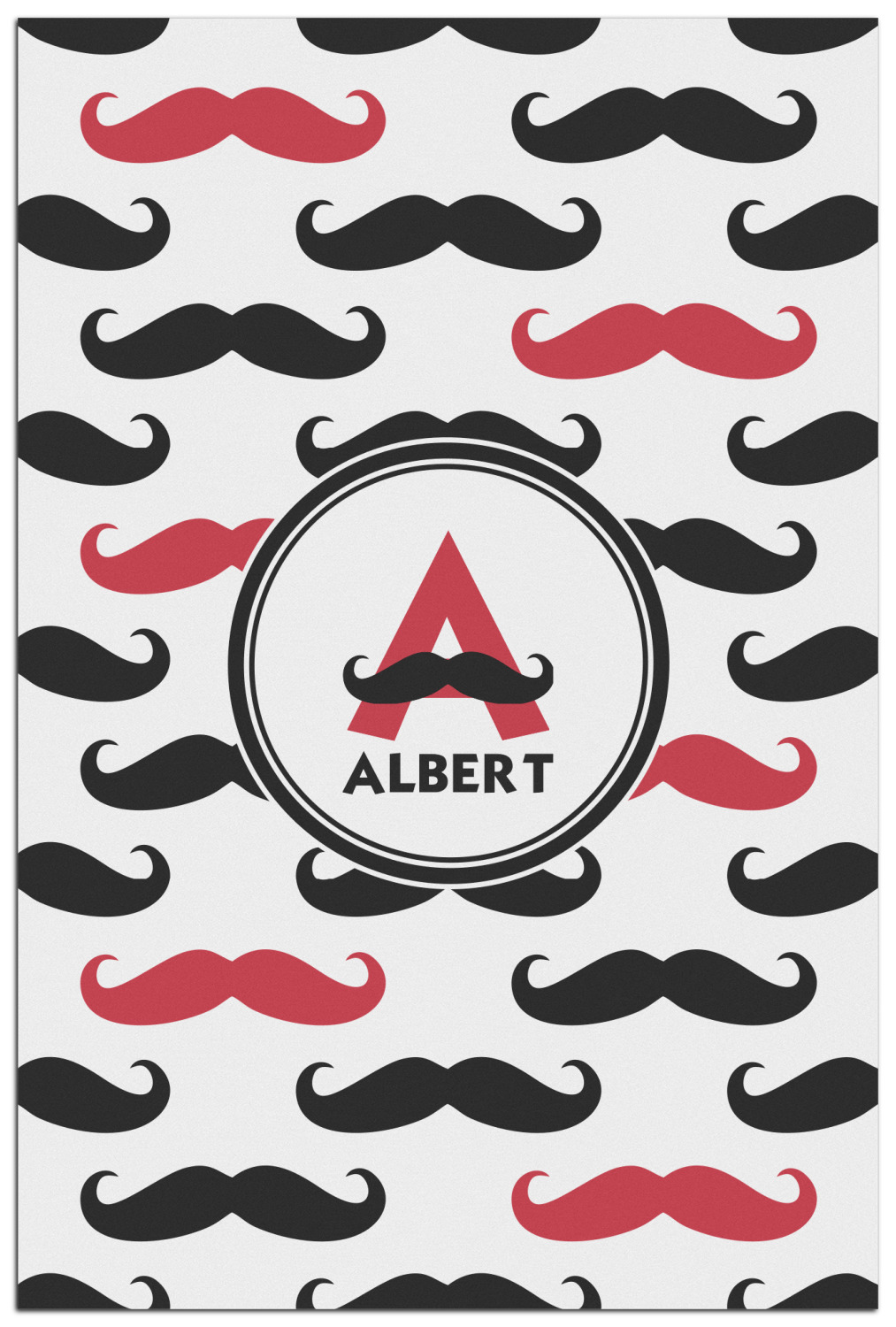 With the growing popularity of mustaches, we had to create a mustache print!! Our adorable mustache print is mostly black and white with a pop of color. We chose to do our design and images with a splash of red. You can customize your design by selecting the color you want! Don't forget to add your name and/or initial for that fun personalization with a touch of whimsy!