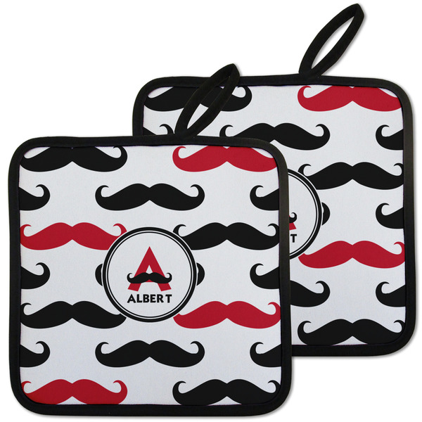 Our personalized pot holders feature a neoprene front that displays your personalization in vibrant colors. The backing of the hot pot holder is rubberized; the textured backing allows you to have a great grip when using this custom pot holder. The two materials are joined with a sleek, black trim, and the holder also includes an attached loop for hanging and storage. The pot holder is approximately 8.75 inches by 8.75 inches and 0.25 inches tall, while the fabric loop is 2.5 inches long. You can purchase a kitchen pot holder by itself or as a set of 2. We also offer a set including one pot holder and one oven mitt.
