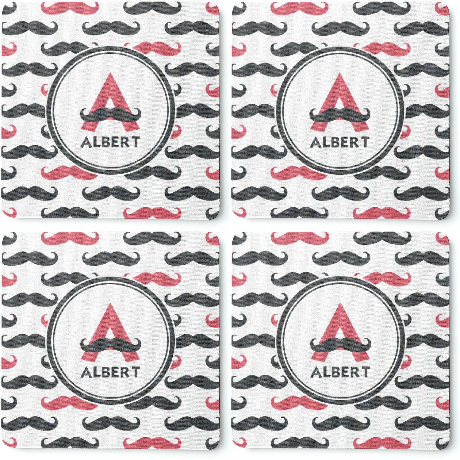 These drink coasters have a smooth, polyester top and a textured, rubber backing on its bottom. The non-slip rubber backing underneath works to keep any spills at bay. At 4 by 4 by 0.25 inches thick, these custom coasters are a suitable size for most drinkware. Your personalization is displayed atop the face of the cup coaster. We sell these rubber coasters in two different shapes: square and round. You can buy each shape as singulars or as a set of 4.