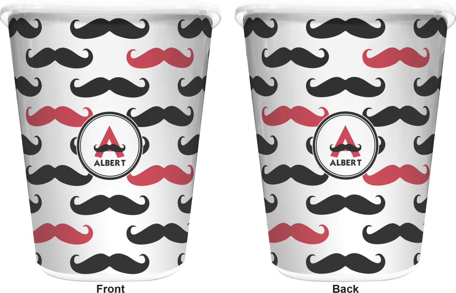 You can choose to purchase these decorative wastebaskets in either a white or a black color that will show on the base and the upper rim. Your customization is printed on a high-gloss, fine-quality vinyl adhesive, and you can choose to either have this adhesive applied to one side only or to both sides. As such, this plastic wastebasket can be single-sided or double-sided, depending on your creative vision. Your customization is printed using durable inks, making the design waterproof and resistant to fading over time.
