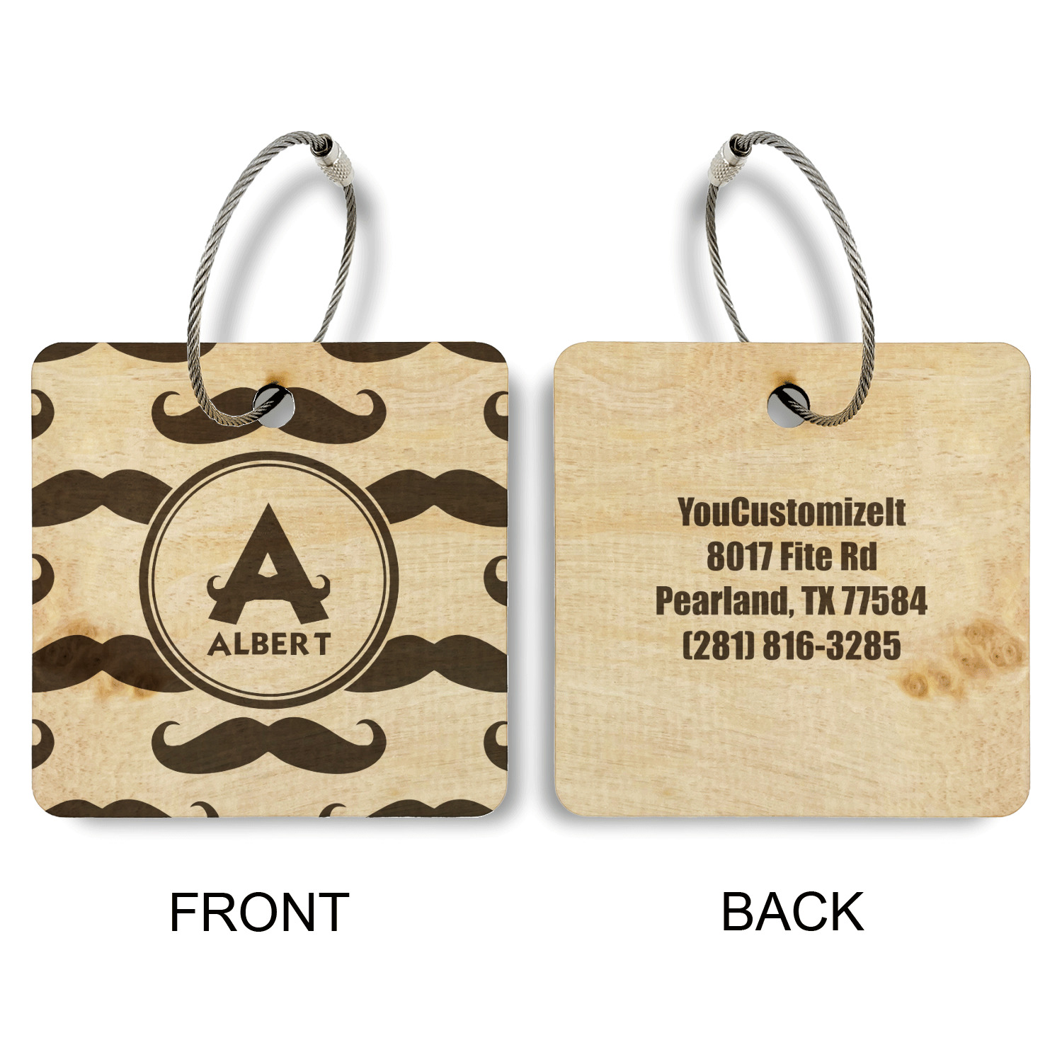 Made from a premium hardwood, these luggage tags are laser engraved and cut just for you. The front contains your design of choice and the back has your contact information to ensure your luggage gets back to you if ever lost.