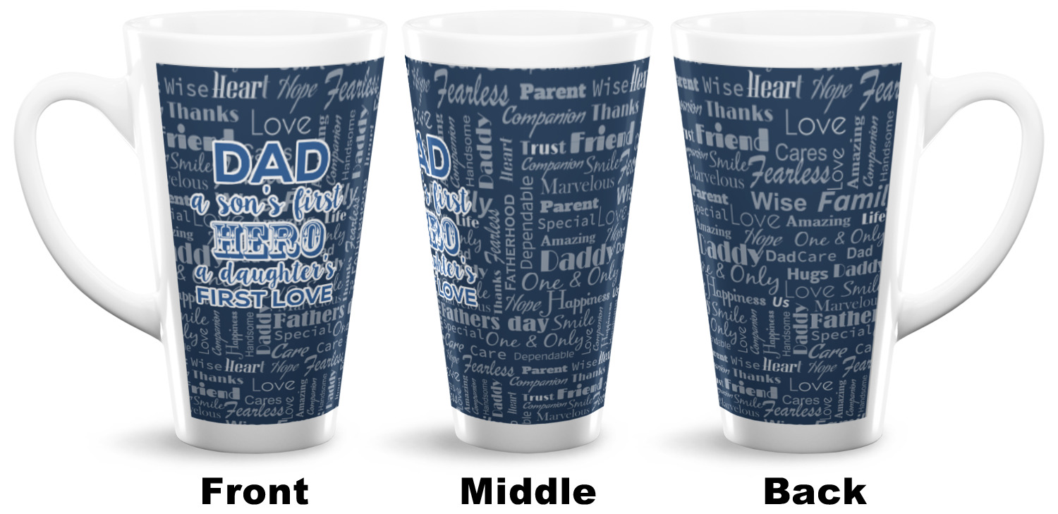 Sip and stay cozy with our custom latte mugs! Mugs are a simple gift for anyone, but make yours unique by personalizing our ceramic mugs for you and your close ones! Our tall latte mugs are great for an iced latte to start your day or the perfect size for some extra warm tea before bed! Use our smaller latte mugs to practice latte art! Browse our many designs, create your own, upload a photo or logo, and more with our online design studio!