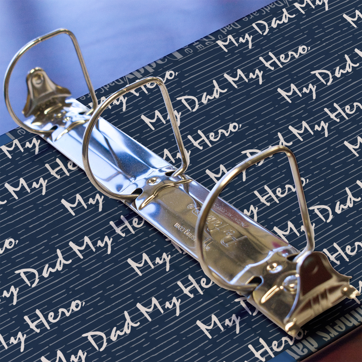The outside is printed in 3 sections - front cover, spine and back cover - while the inside is printed in a full single print of your choice. The inside boasts a high quality nickel plated binder mechanism with a trigger opening function and is secured to the cardboard binder with posts and screws.