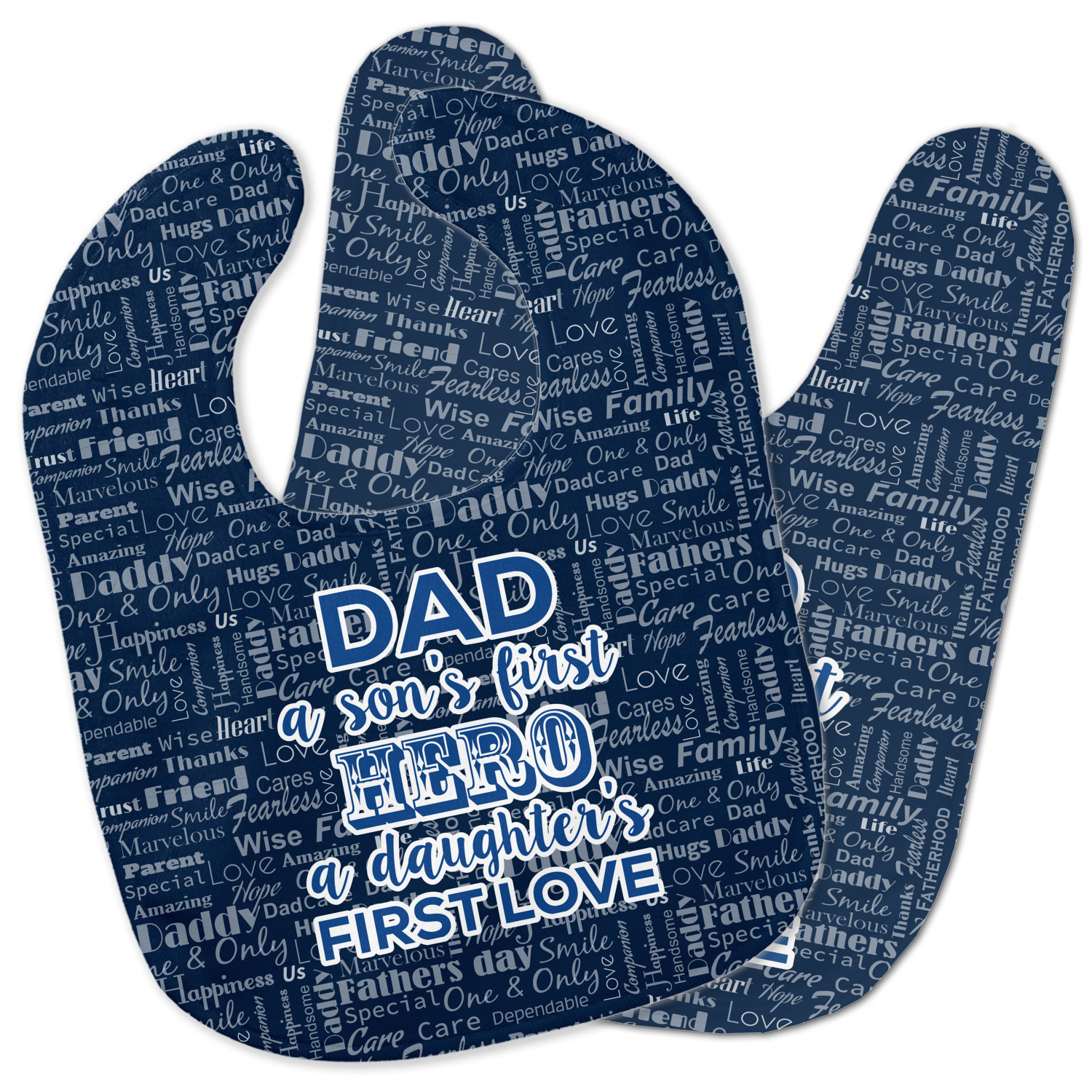 Made of soft polyester, each customizable bib hugs comfortably around the neck to catch every drip and drool. Each bib design is printed with baby-safe ink and finished with a secure stitch pattern and velcro clasp. We carry two customizable bib styles -Microfiber Velour and Jersey Knit.