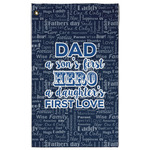 The background of this design is a fun word cloud that says different words to describe a father like "friend," "thanks," "father's day," "happiness," and more. The design is filled with a few different shades of blue and a little accent of white. The main graphic is a quote that says "Dad, a son's first hero, a daughter's first love." What a sweet design for Father's Day!