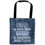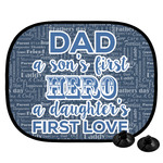 The background of this design is a fun word cloud that says different words to describe a father like "friend," "thanks," "father's day," "happiness," and more. The design is filled with a few different shades of blue and a little accent of white. The main graphic is a quote that says "Dad, a son's first hero, a daughter's first love." What a sweet design for Father's Day!