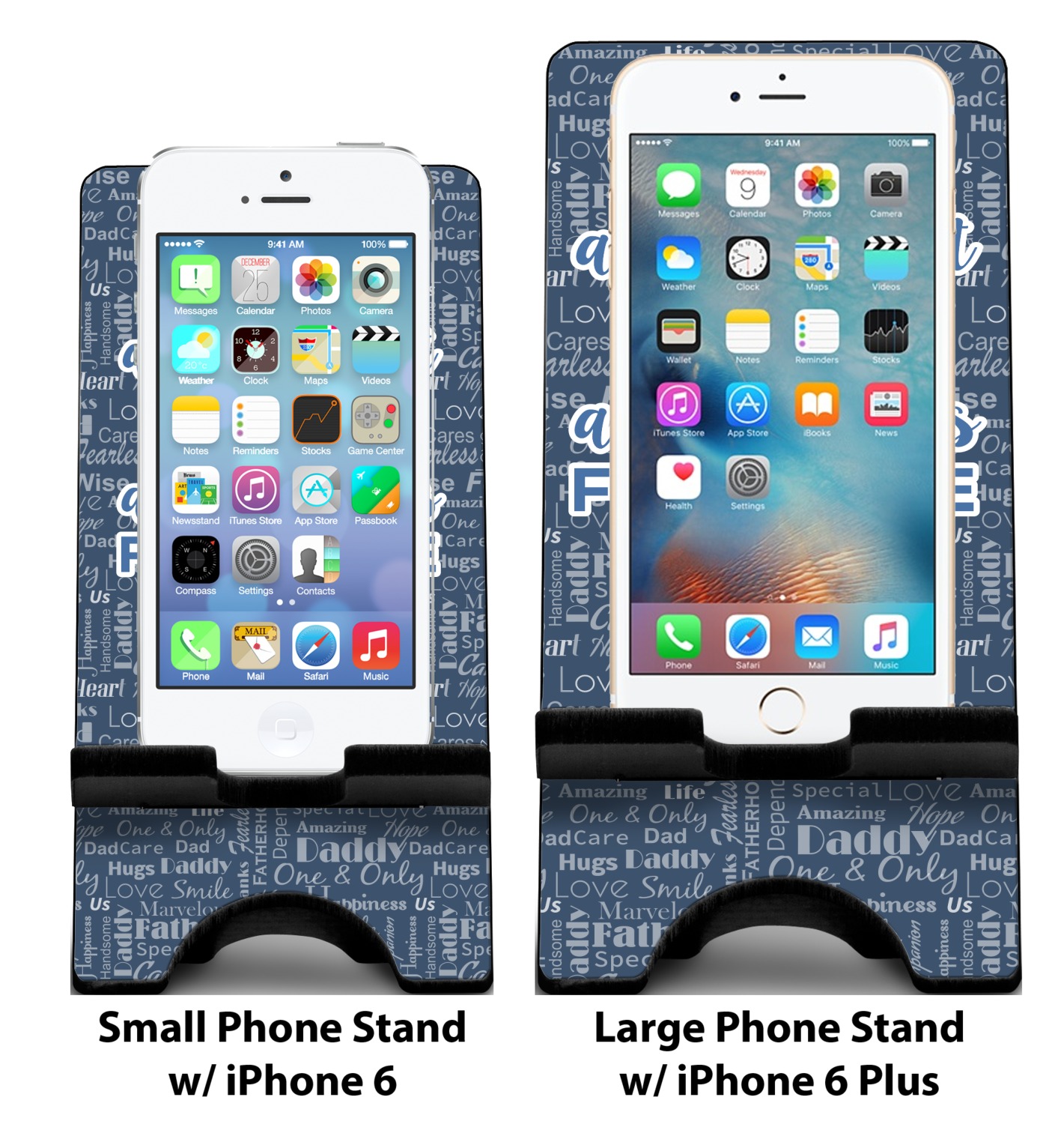 To meet your needs, we offer four variations of this IPhone stand. The backboard of the first version is shaped as a plain, yet sleek rectangle, and is available in two sizes. Our smaller size is approximately 4 by 3.25 by 7 inches, while the larger model is 4 by 3.77 by 8.5 inches. Alongside this model, we also provide you with a more decorative option. The upper part of our second version features a curved edge, for a classy, suave appearance. This phone holder is also sold in two sizes: a smaller version, which is 4 by 3.25 by 7 inches, and our larger model, which is 4 by 3.77 by 8.5 inches. Both models will support large phones, but the larger model is better if you wish to proudly display your personalized design.