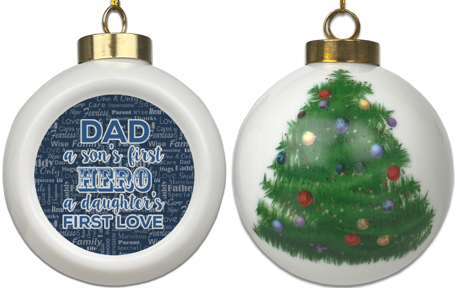 Our Christmas ornaments are a unique ceramic ball shape with a twist as it has a flat face to display your custom design! Select from one of our two design types - Christmas Tree or Poinsettia Garland - to adorn the curved back of your personal design. Each ornament measures 3H x 2.5W x 2D accompanied with a gold string accent for finishing touches to hang on your beautiful Christmas tree!