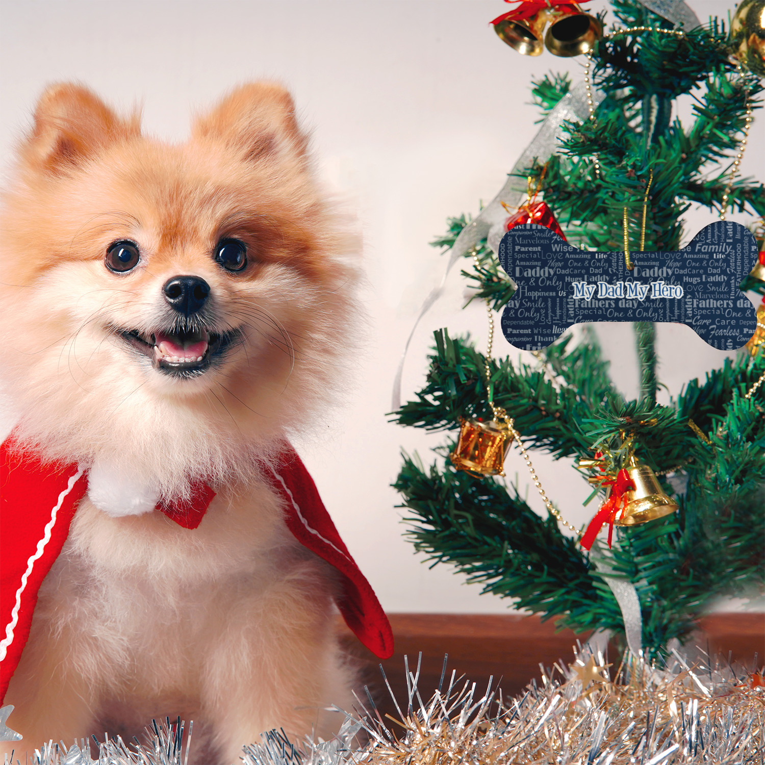 Pets are part of the family, too! Show off your puppy love by creating a personalized ornament for them this Christmas! You'll have their tails wagging hanging up their own custom dog bone ornament! Our customizable ornaments are more than just decorations for the holidays. Use the dog ornament as a nameplate, unique photo frame, or more! Start personalizing your dog ornament today with our online design studio. We offer customizable designs, or you can upload a photo for us to print!