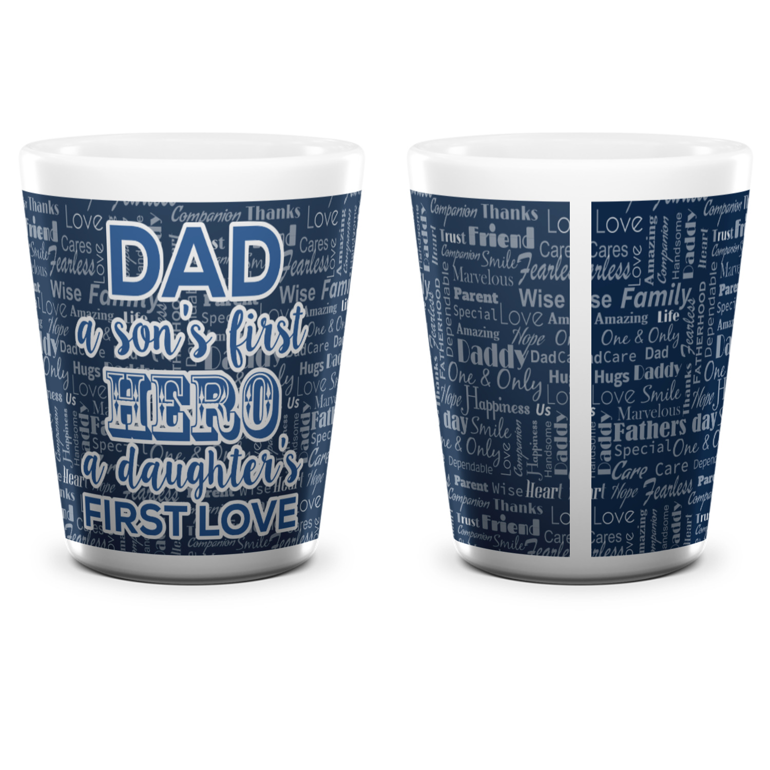 Made from ceramic these shot glasses are printed in full color with the design of your choice. These are a standard 1.5oz size and stand 2.25" tall. Available in a full white ceramic or a two-tone with a black color inside the shot glass. Buy a single or a set of 4, all of which can be designed separately to get you just what you want and need.