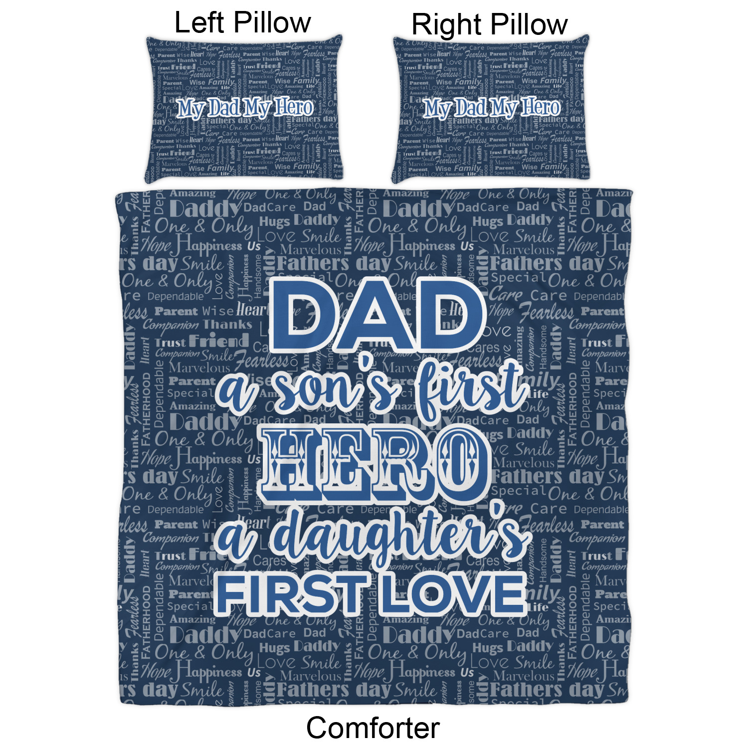We have hundreds of different design templates for you to choose from Each design can be customized to your exact specifications. Not only can you customize the comforter, but you can also customize each pillow sham e.g. for a queen comforter set you have have Mr & Mrs pillow shams with the last name on comforter.
