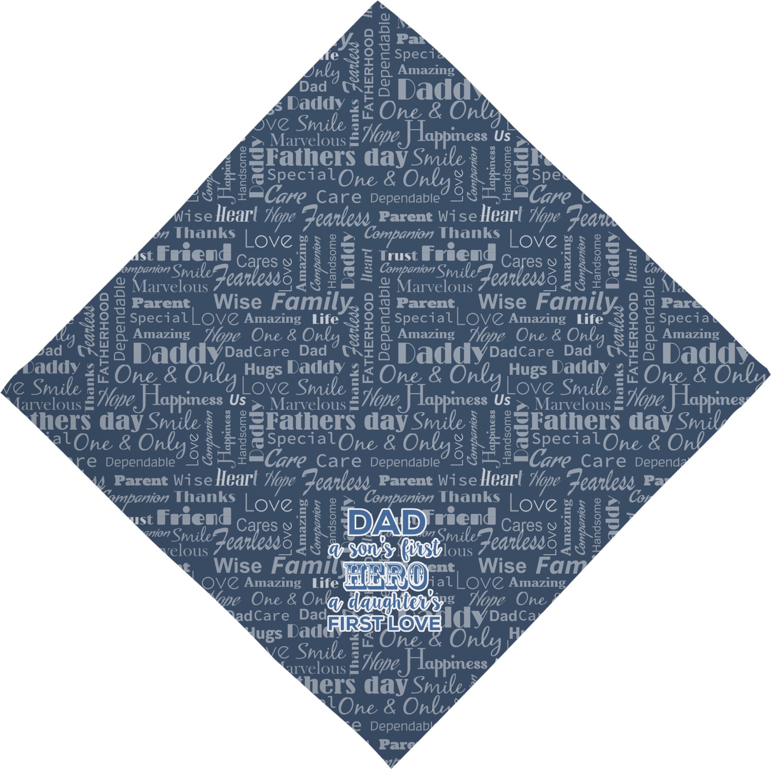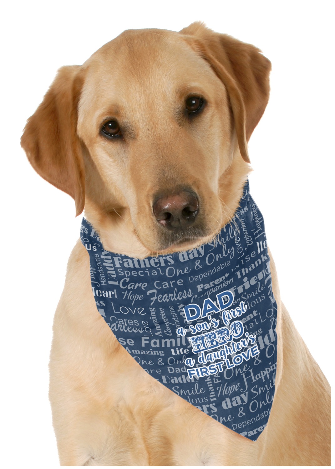 This beautiful pet bandana really is the perfect accessory. It is made from a silky feeling polyester and measures at approximately 23" x 23". Your personalization will be printed on a diagonal, so that you are able to read the personalization when folded into a triangle. This bandana fits best on large dogs, but can be folded smaller if there is no personalized text to fit smaller pets.
