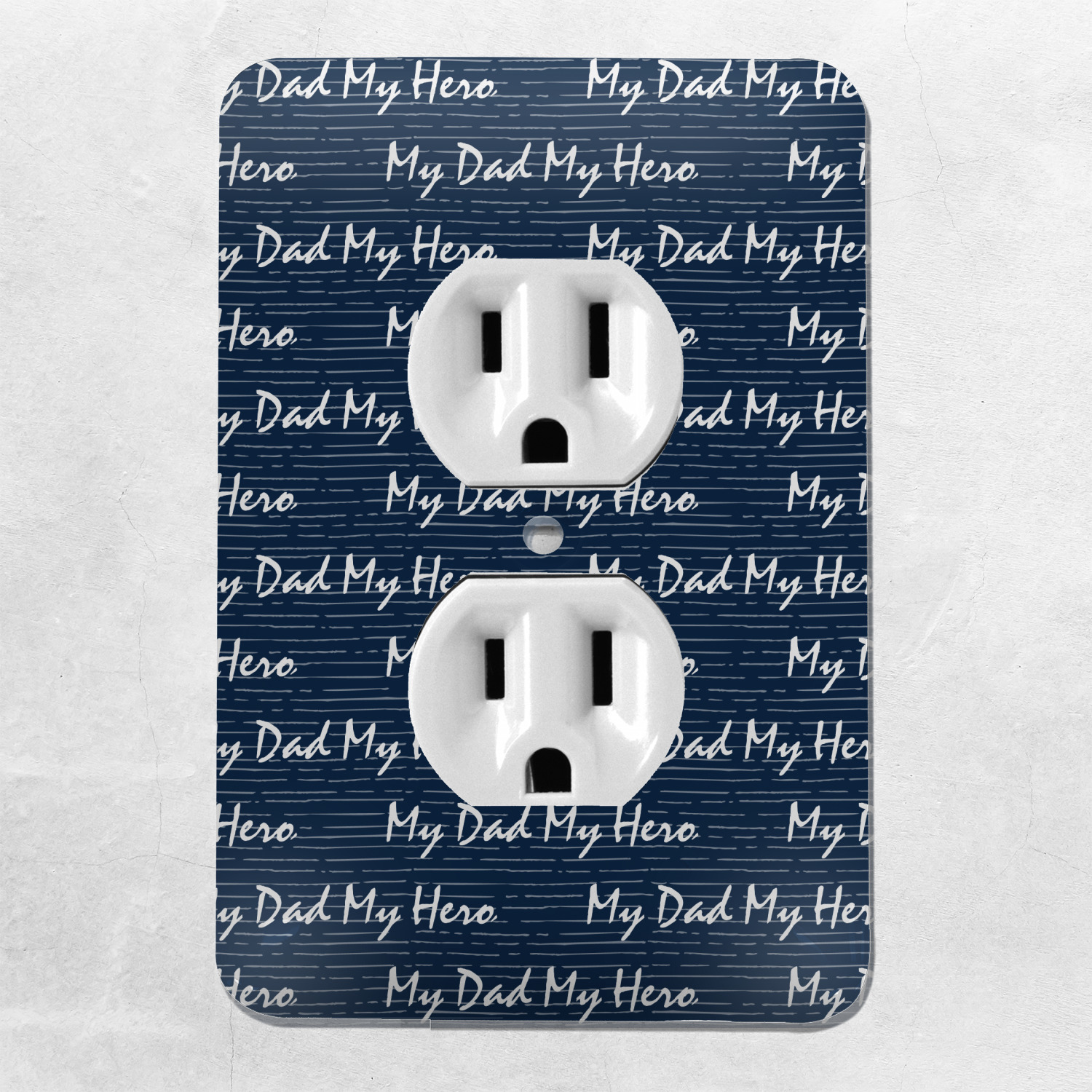 These outlet covers are made from a sturdy metal and display your design across its face. A satin finish coats the design to give it a finished look. The center of this outlet plate cover has a small hole to accommodate a screw upon installation. With your purchase of this decorative outlet cover, we include one screw. This outlet plate is of a standard size, and measures at approximately 3.5 by 5 inches.