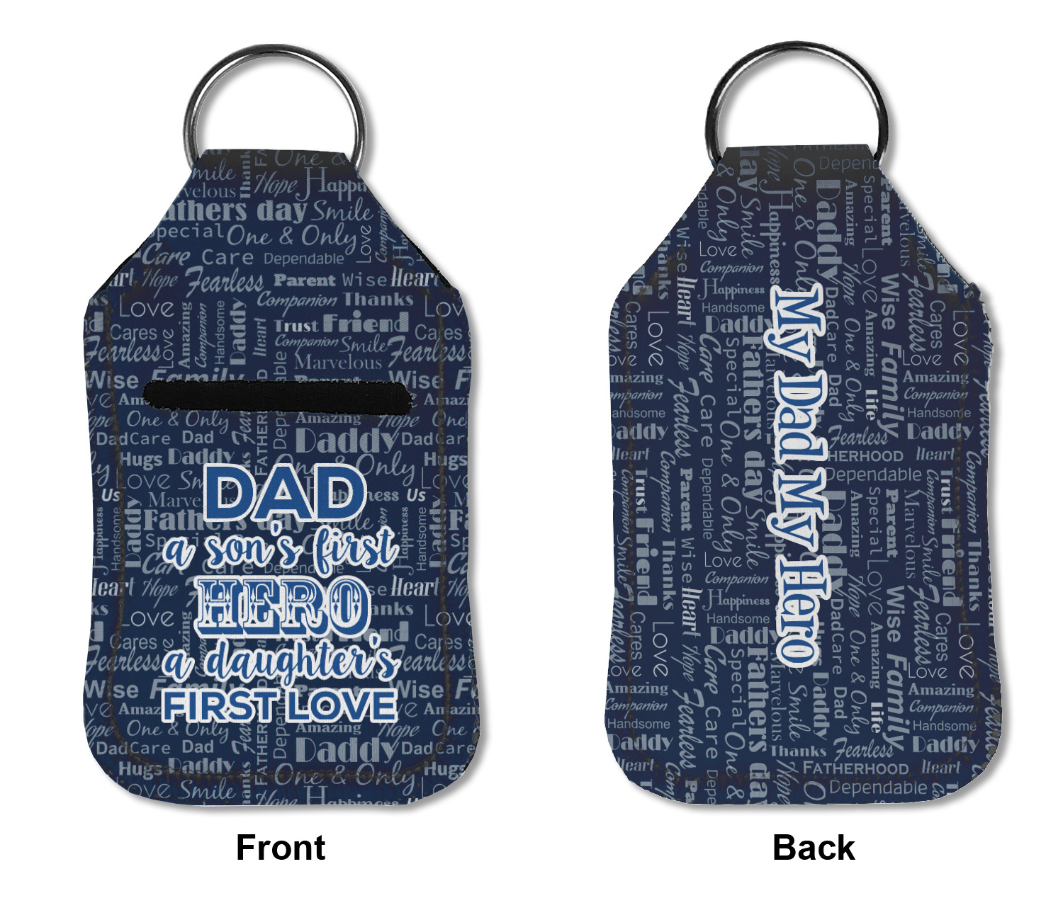 Each hand sanitizer holder comes with its own empty travel-sized, refillable hand sanitizer sure to fit snug in your customized sanitizer case! Our hand sanitizer cases are a durable, yet soft neoprene material sure to last any daily activities or travel agenda. Customize and personalize a hand sanitizer bottle holder with one of our two sizes - small (4.25" x 2.25") or large (5.5" x 2.5"). Each travel sanitizer holder comes with a keyring for attachment on bags, keys, or more!