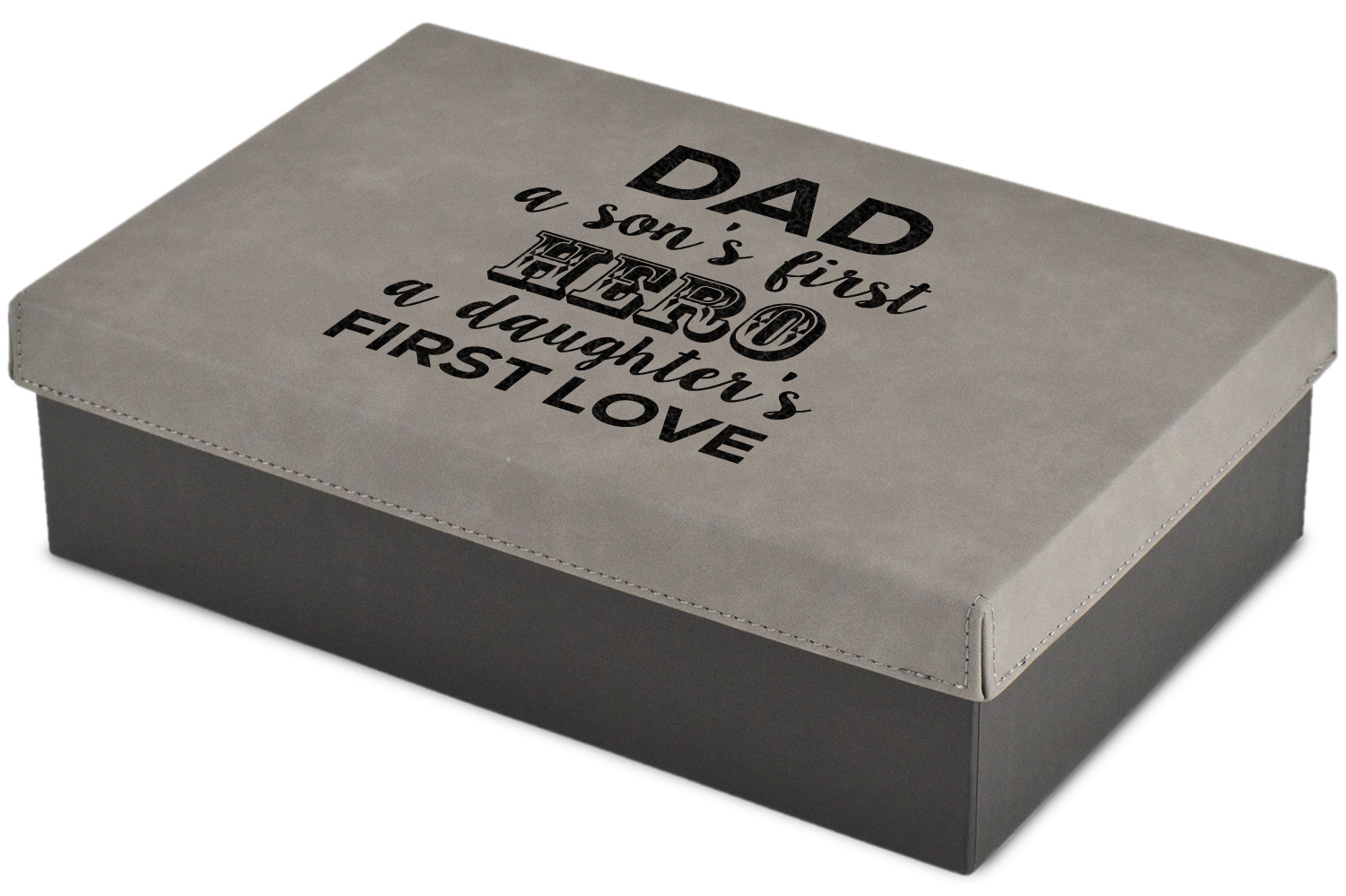 These gift boxes are available in 3 different sizes to accommodate various sized gifts. Available in gray as a neutral color for any occasion as well as to showcase your design boldly. Engraved with a laser this high quality paper board and faux leather gift box is unique and makes any gift stand out.