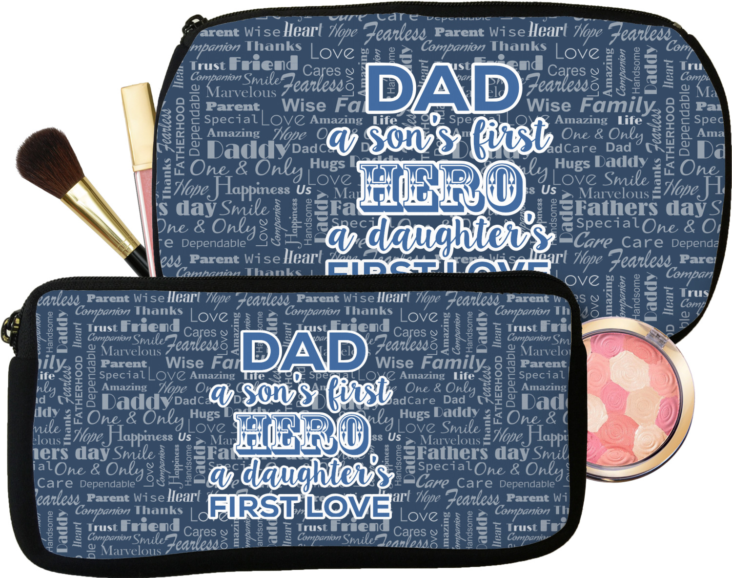 Our personalized makeup bags are available in many different designs, patterns and colors - so you are sure to find one that will love. They are made of neoprene (same material as wet-suits) and thus are water resistant, so spillages in your makeup bag will not end up all over you purse. They are customized on one side and are black on the other side and the zipper is black as well.