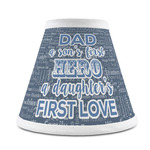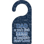The background of this design is a fun word cloud that says different words to describe a father like "friend," "thanks," "father's day," "happiness," and more. The design is filled with a few different shades of blue and a little accent of white. The main graphic is a quote that says "Dad, a son's first hero, a daughter's first love." What a sweet design for Father's Day!
