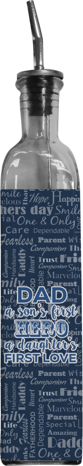 Made from recycled glass in Spain, these oil bottles have a classic, delicate look, and are accompanied by a metal spout for controlled pouring. Each bottle holds approximately 13 ounces and measures at 12 by 2 inches. We customize your glass oil bottle by applying your personalized design on the front and sides, using an adhesive. Our customizable stickers are made from high quality, gloss vinyl and are printed with waterproof, eco-solvent inks. These pieces are machine cut for accuracy and symmetry. The result is a robust, waterproof, adhesive decal that will not fade or deteriorate with time.