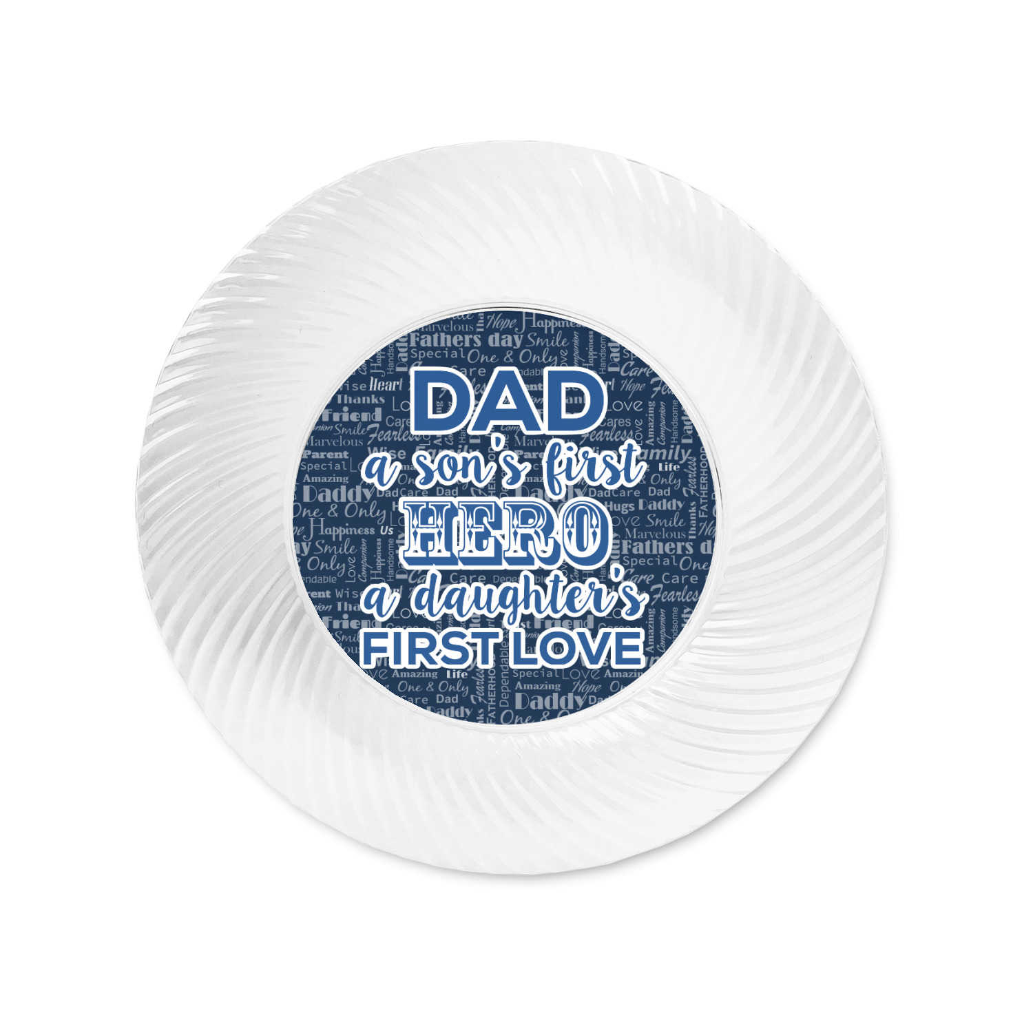 Made from a beautiful clear plastic plate as a base, your design is printed to the underside of the plate. The outside of the plate has a classic swirl texture to it for a high quality look and feel.