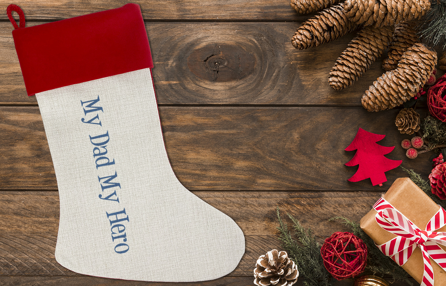 Our classic red stockings are made from a soft, yet durable polyester material perfect for any stocking stuffer! The front of our Christmas stockings have a linen front that boldly displays your custom design accented with a lush red cuff resting all around the stocking. Each stocking is approximately 18x12 with a durable cotton rope loop for hanging.