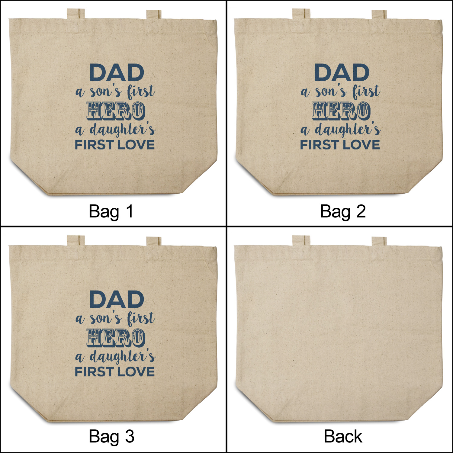 Our cotton totes are perfect for groceries, and can also be used to haul other stuff around as well. These totes are slightly larger than an average size tote - these cotton totes are 15" wide by 17" high, and have a 6" bottom gusset, which means they can hold more stuff and bulkier items.