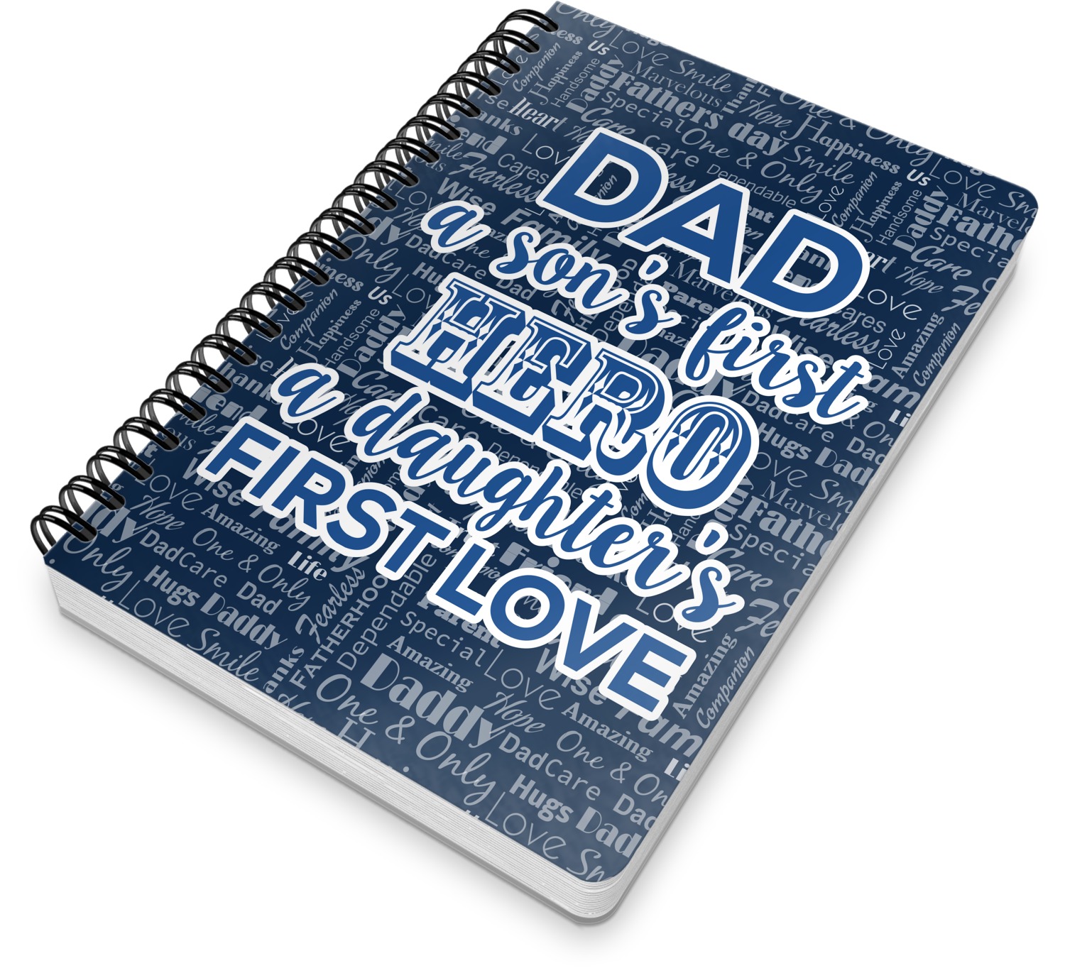 This spiral notebook includes 75 sheets of thick, ruled paper. The front and back of this custom notebook is made of a robust, laminate, plastic covering. We print your personalization on these two panels, underneath a glossy finish, which emphasizes the colors of your design. The two panels and the sheets of paper are held together by a sturdy, black coil. The paper within your bound notebook is perforated for easy, clean tearing.