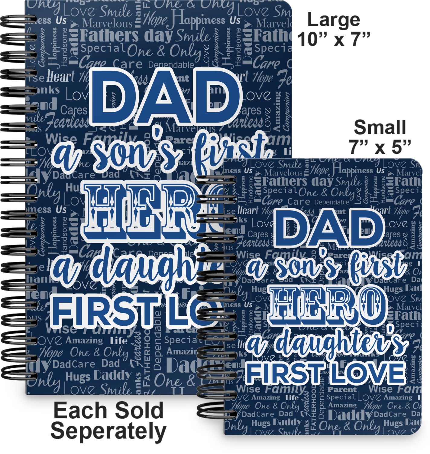 This spiral journal is available in two sizes. The first size is more suitable for a tote or purse and measures at 7" x 5". The second option is a bit larger, at 10" x 7", and is a better fit for a briefcase or backpack.