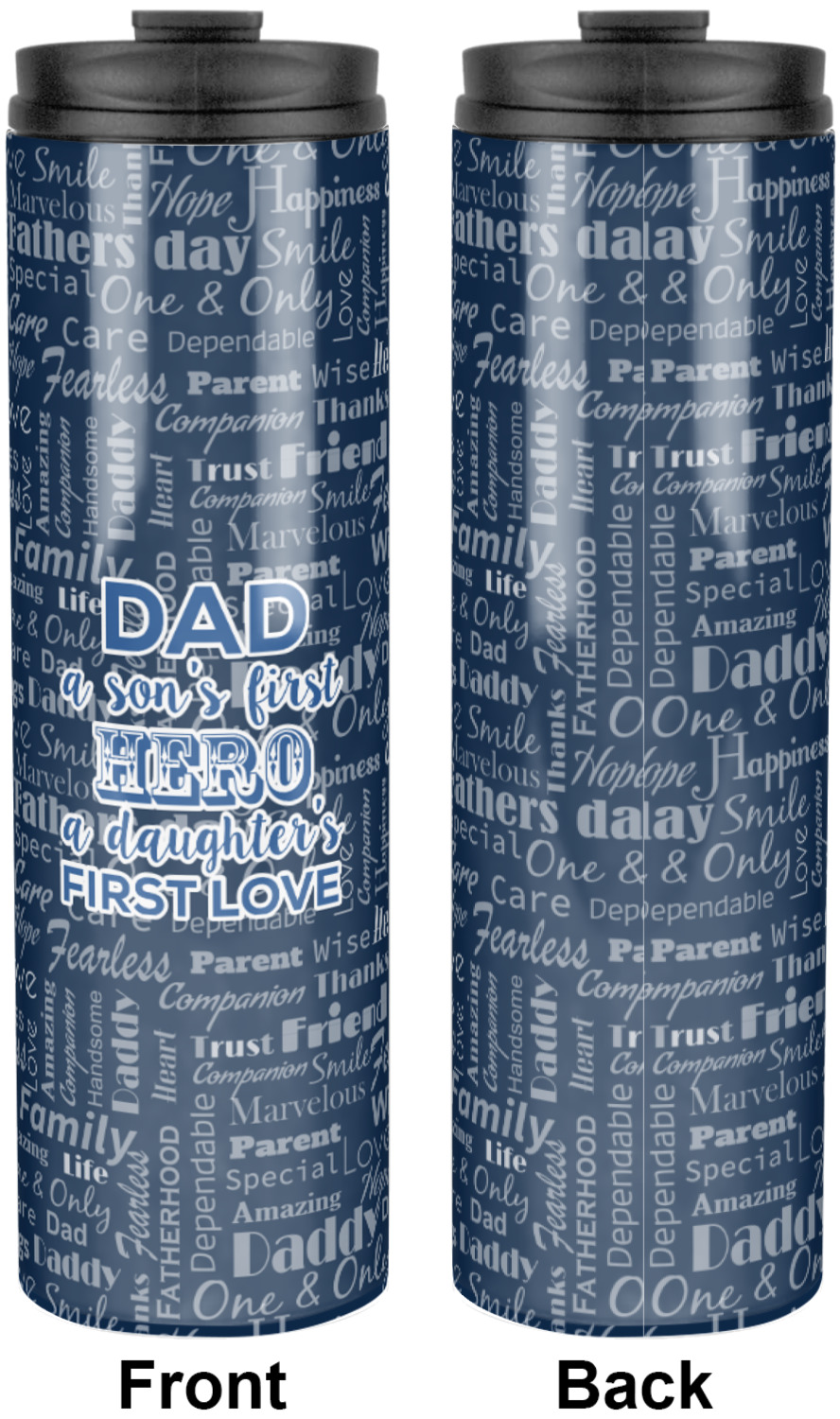 Sip your favorite drink on the go with your own custom stainless steel tumbler! Our slim cylinder shape is perfect for holding your drink in hand, in your purse, or in your backpack! This sleek and modern tumbler is a perfect gift for coffee and tea lovers keeping their drinks just the right temperature throughout the day! We offer two sizes, a 16 oz. or 20 oz., to personalize. Browse and customize or design or create your own with our online design studio!