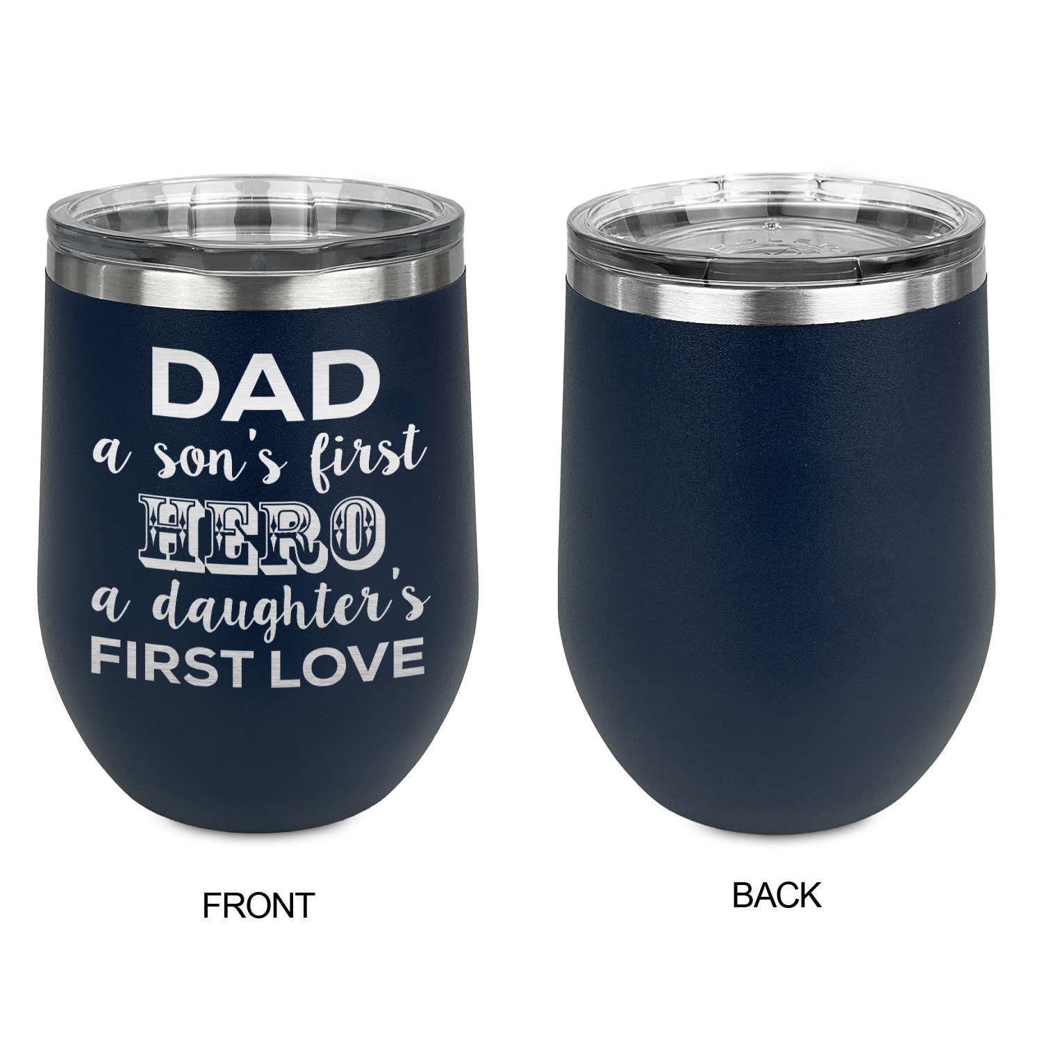 Quote + Saying Designs for Stemless Stainless Steel Wine Tumblers - Navy - Single-Sided