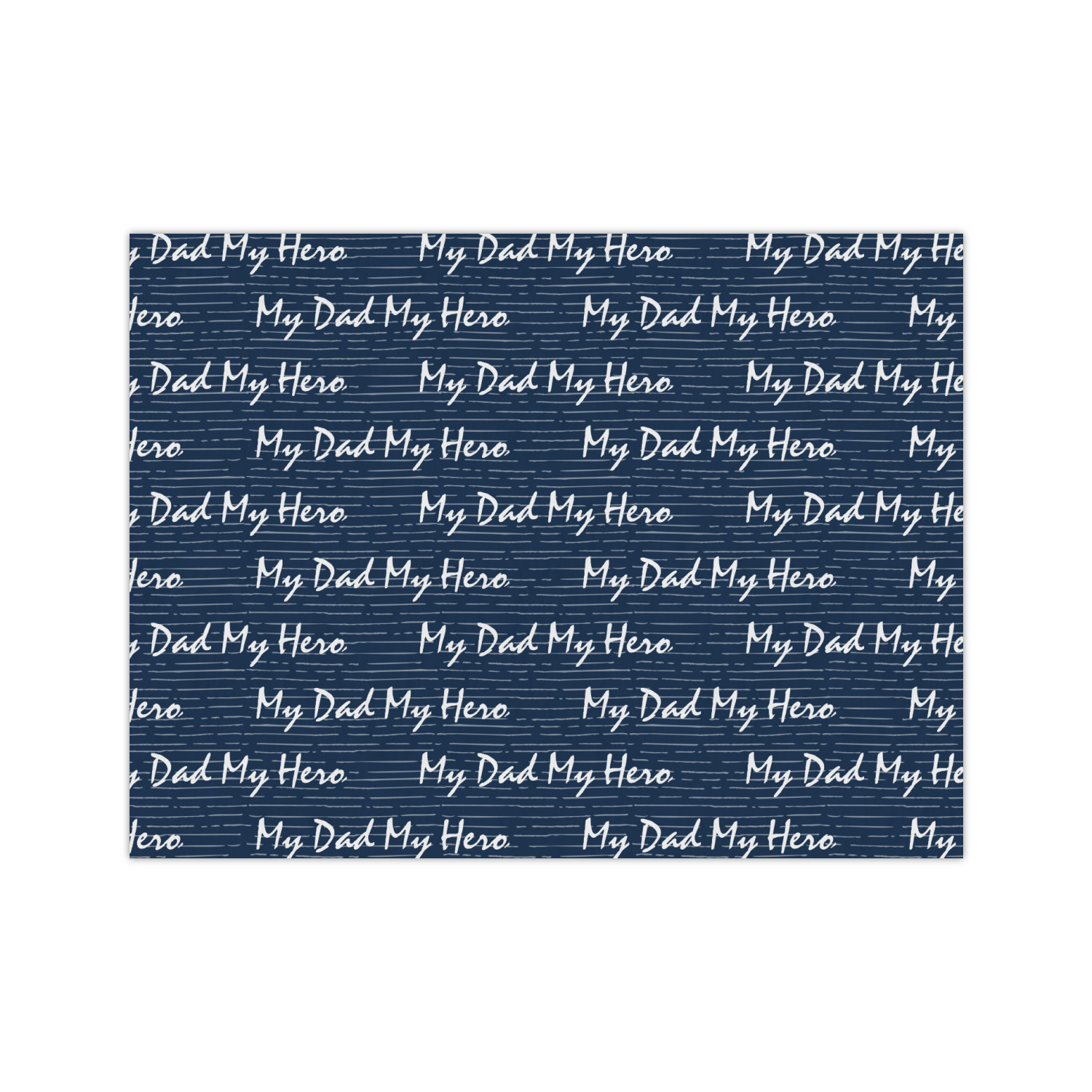 The background of this design is a fun word cloud that says different words to describe a father like "friend," "thanks," "father's day," "happiness," and more. The design is filled with a few different shades of blue and a little accent of white. The main graphic is a quote that says "Dad, a son's first hero, a daughter's first love." What a sweet design for Father's Day!